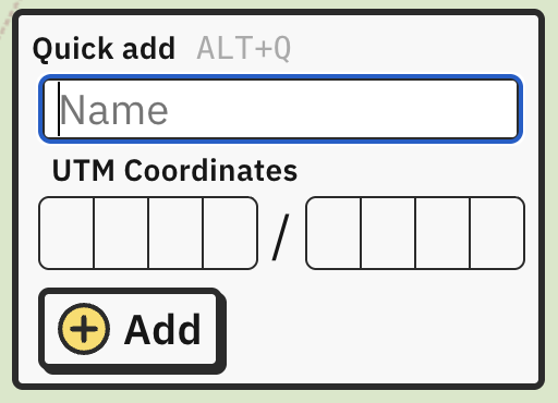 Coordinates can be switched between Decimal and Degrees Longitude/Latitude or UTM and short UTM formats with a dropdown input.
